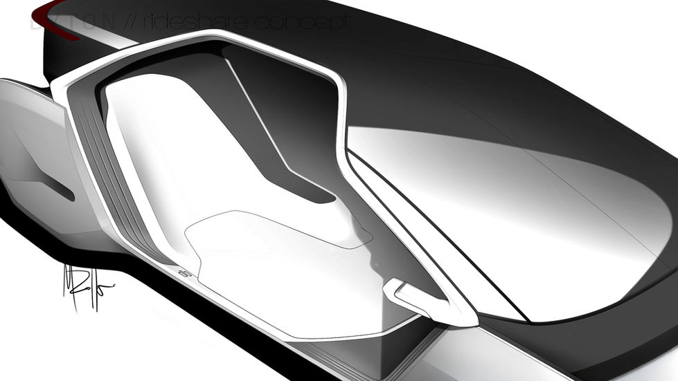 A concept developed while at the Chinese car company Byton. The majority of ride-share rides are single passenger. Neither the cars nor the system are optimized for this.